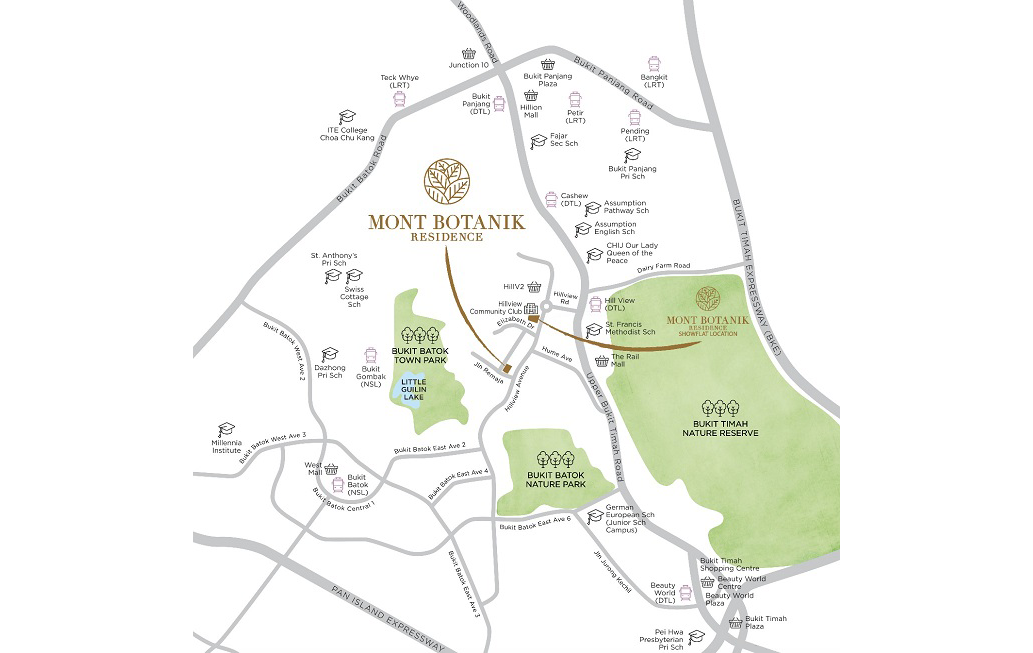 Nestled in the exclusive Hillview private residential estate, Mont Botanik Residence is close to Hillview MRT station and near shopping malls such as HillV2, The Rail Mall, Junction 10, West Mall, Bukit Timah Plaza, Bukit Timah Shopping Centre and Beauty World.